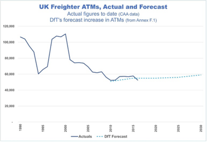 Firstly, people don’t come to Thanet or any part of north-east Kent by accident; you are never passing through on the way to somewhere else; we are not a logistically well-placed part of the UK, as you could argue for example the East Midlands, where there is cargo capacity and all the infrastructure in place or even Stanstead and Southend, might be. Is there really a demand – given the high price of fuel – by importers, to bring their goods to an airport where onwards road-based costs will be higher than they would be if the same goods were flown into elsewhere in Britain for onwards distribution? Think of all those increased queues for the Dartford crossing. Think of all the fuel costings increasing as cargo gets trapped on the M25. Is flying into Manston a good financial option for onwards distributers? I doubt it. The recent months which have seen soaring fuel costs, have shown how precarious any former business model for an East Kent cargo hub must be, especially considering that since Heathrow decided to expand their bellyhold freight operations (around 2001) to offset the high costs of passenger freight, they are unlikely to relinquish a stake in the market. As you can see my the graph below, there isn’t a huge projected increase in cargo air traffic management (ATM) over the next 10 years either.